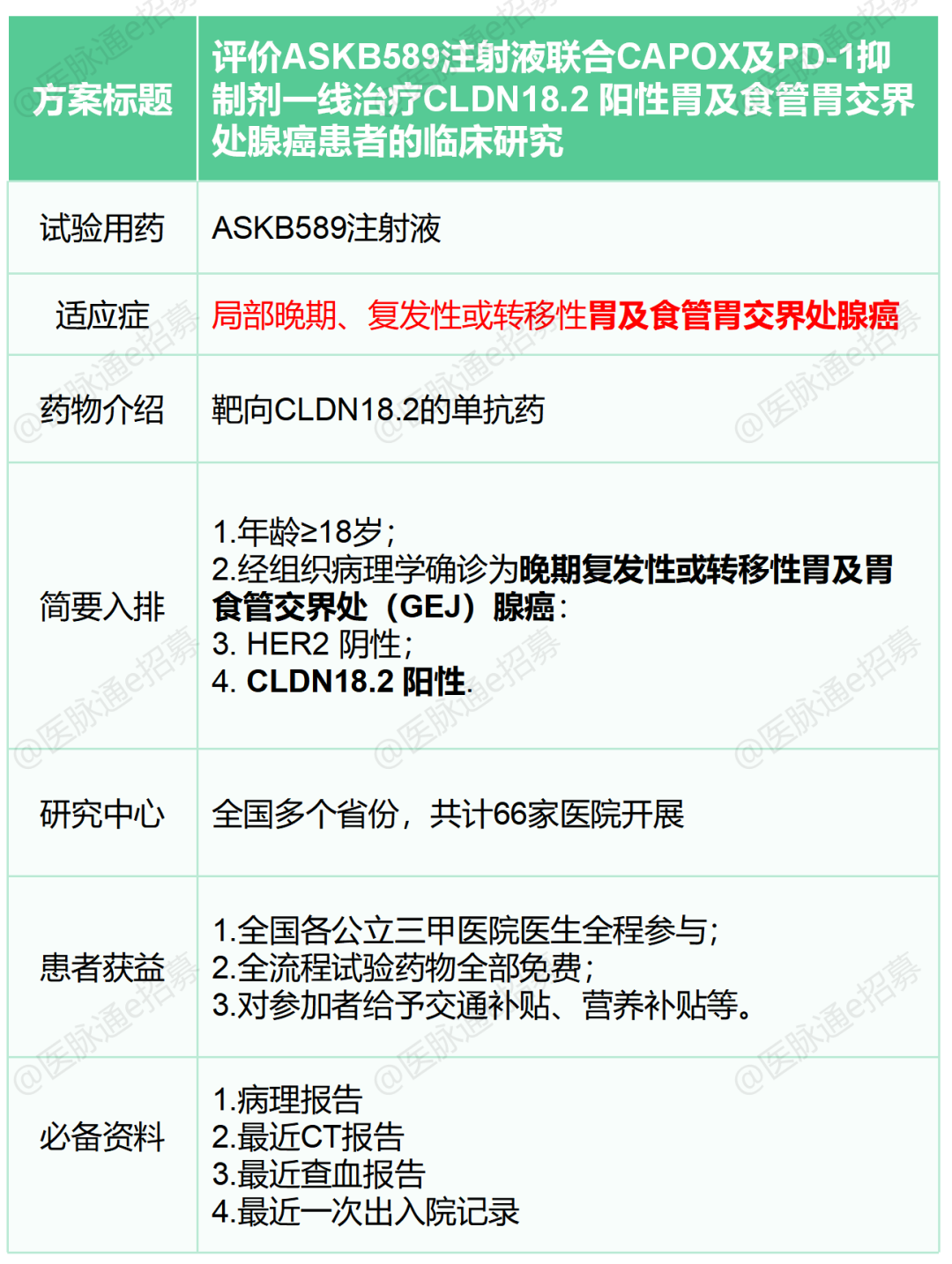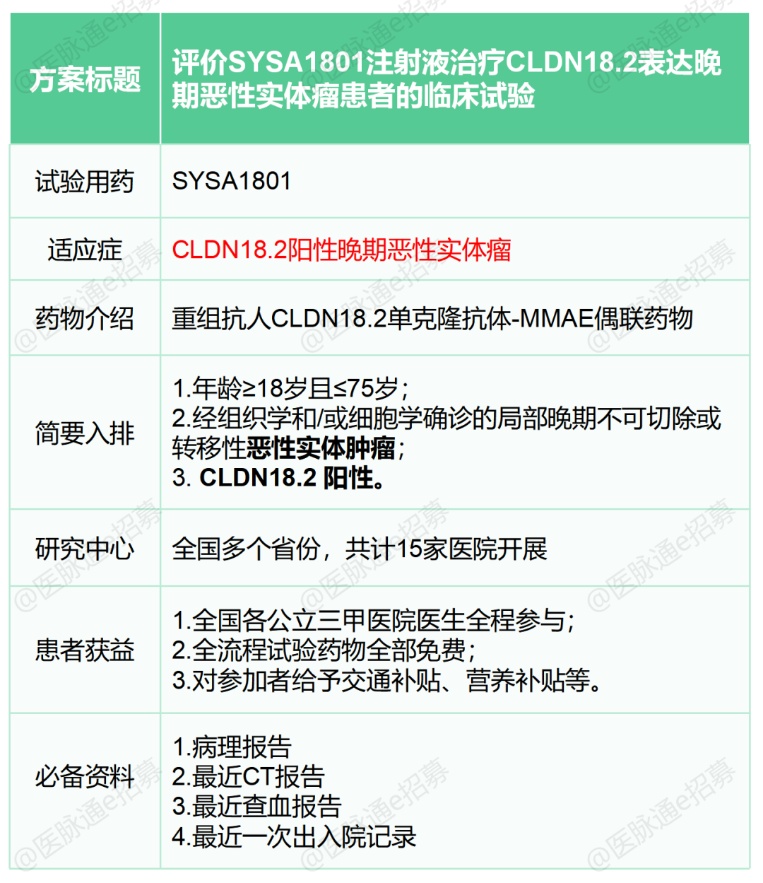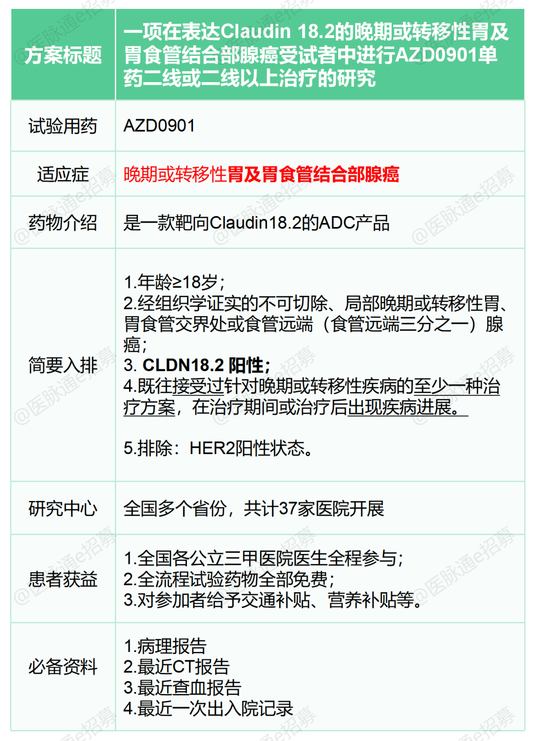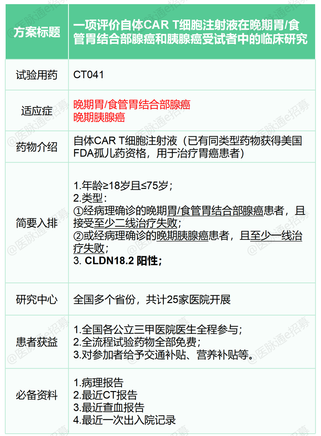 下方试验项目,我们诚邀您参加,研究项目相关的检查和用药免费,并且在公立三甲医院接受治疗和随诊,有需要的患者可以点击下方报名链接联系我们报名。