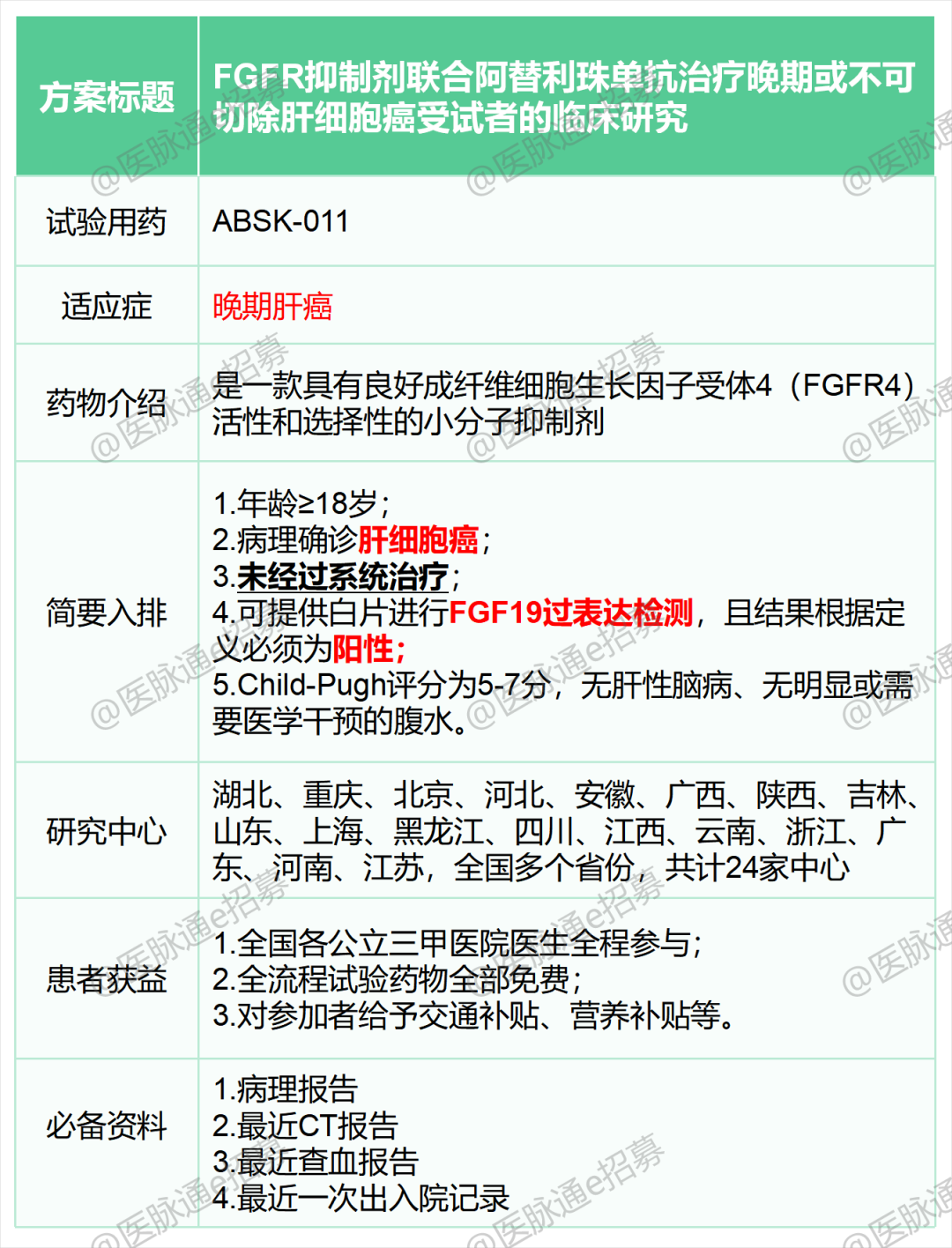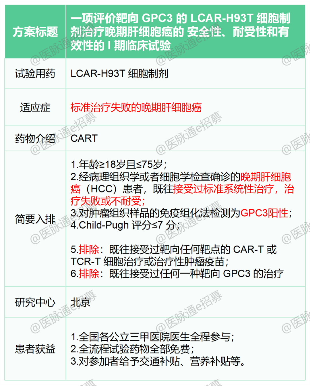 以下是小编为大家挑选的针对肝癌的临床试验项目,我们诚邀您参加,研究项目相关的检查和用药免费,并且在公立三甲医院接受治疗和随诊,有需要的患者可以联系我们报名。